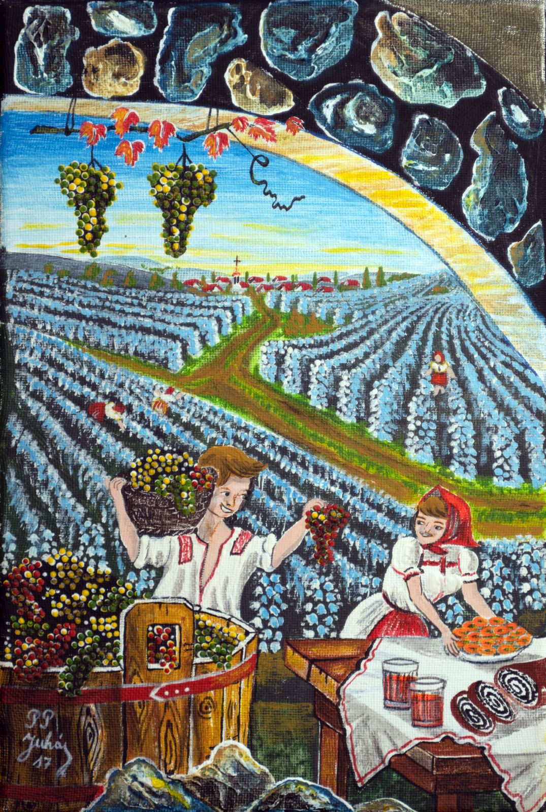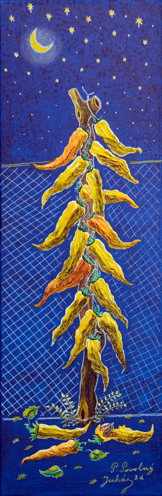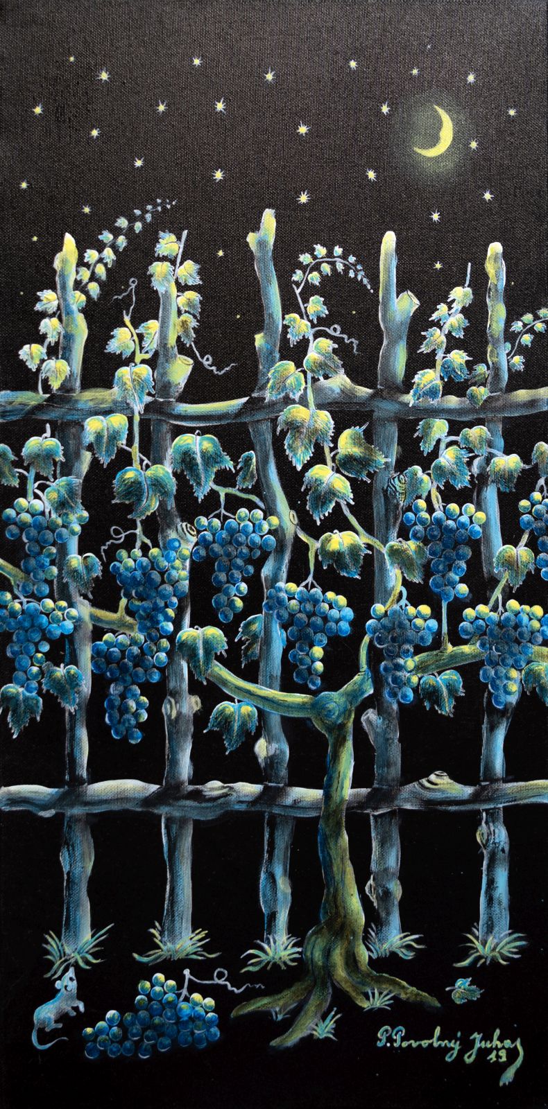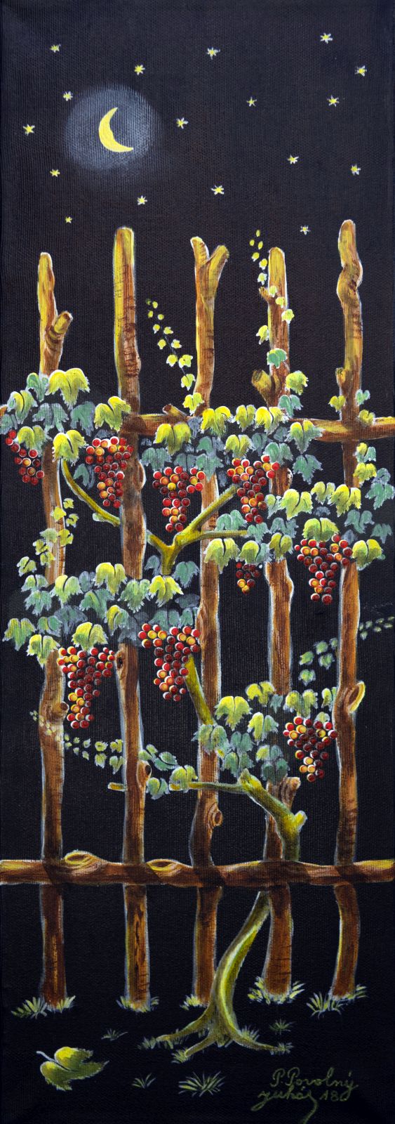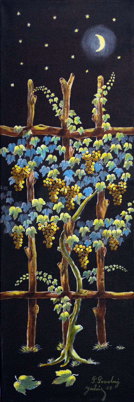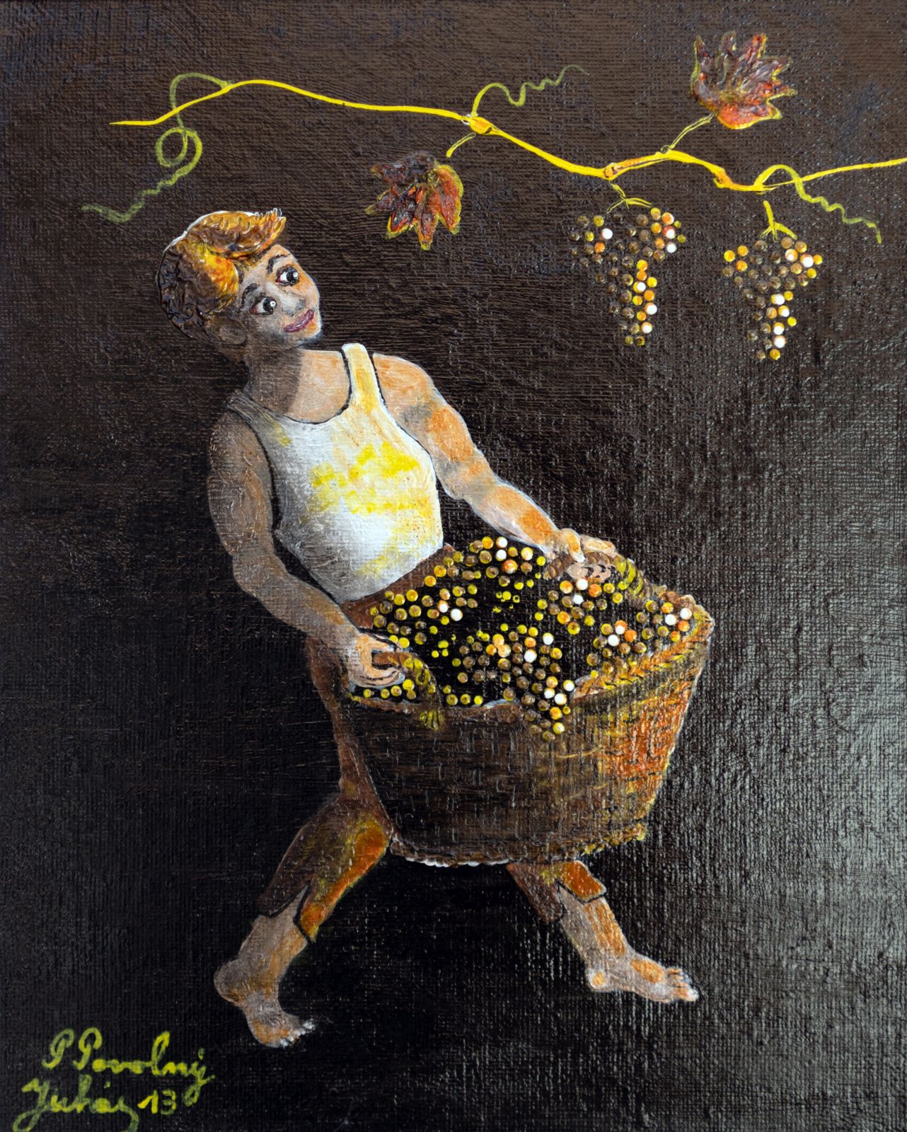 Pavel Povolni Juhas is an artist whose work primarily explores themes of grapes, wine, vineyards, and wine cellars. His pieces bring light that illuminates these spaces, creating an atmosphere of intimacy and richness. Juhas masterfully depicts all aspects of the wine tradition – from golden grapes to the tranquil space of the cellar – where light and shadows play a key role. On his canvases, wine is not just a beverage but a symbol of culture, tradition, and the enjoyment of life.
