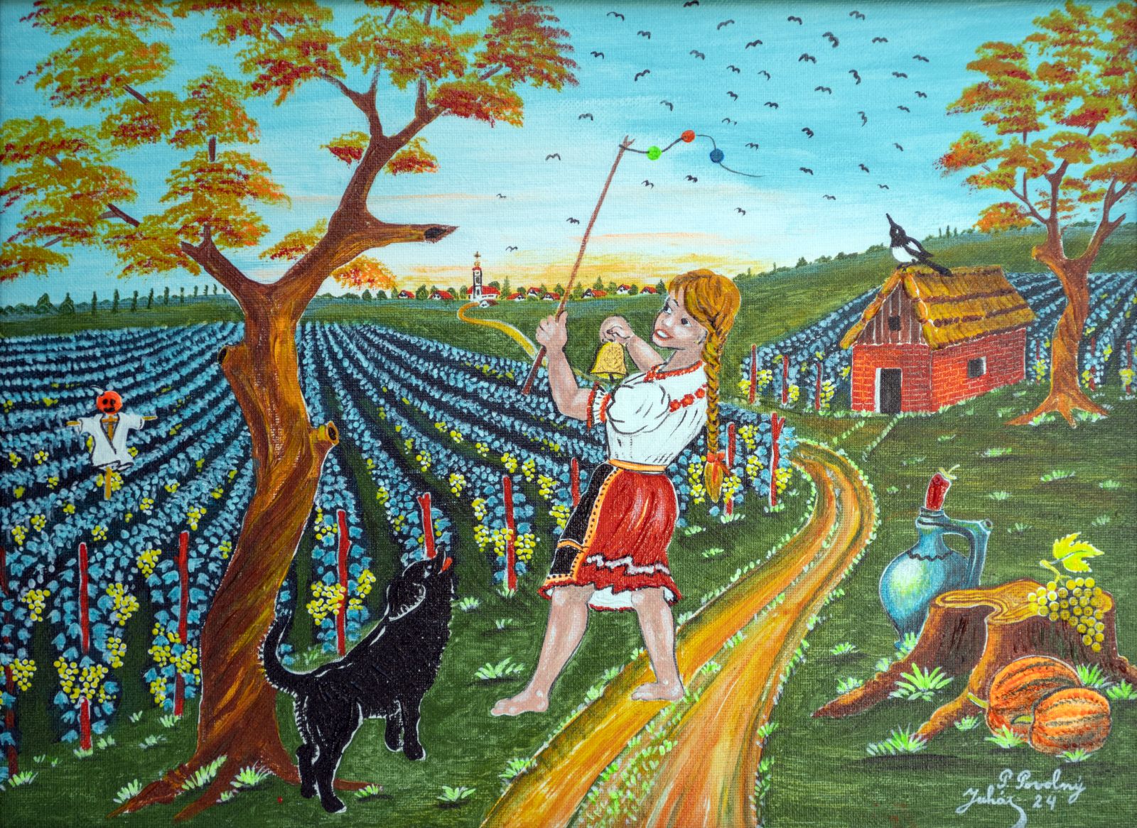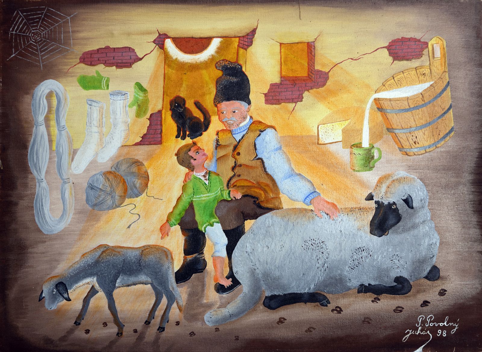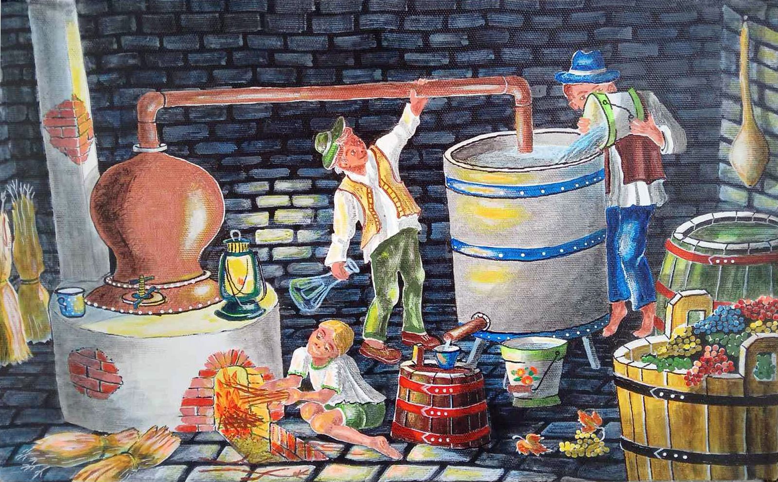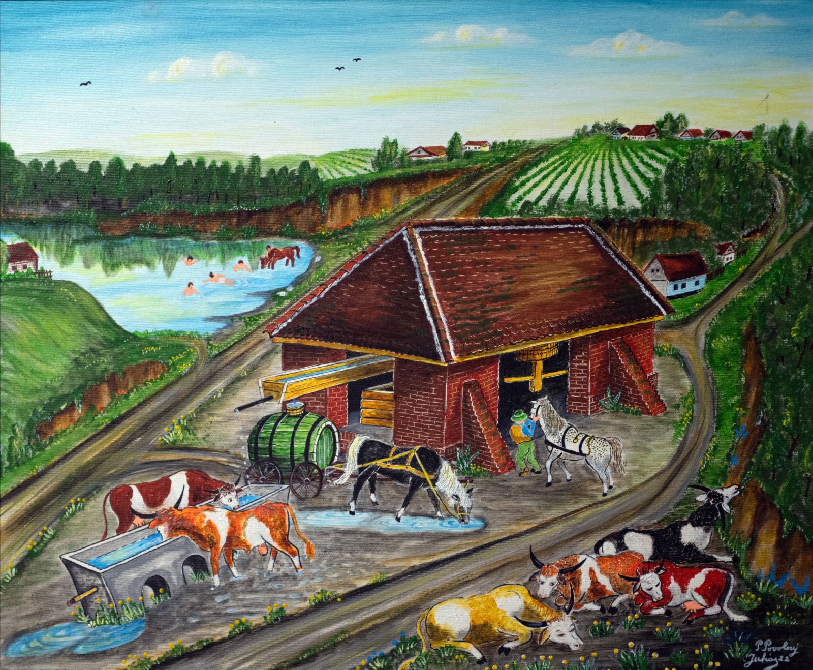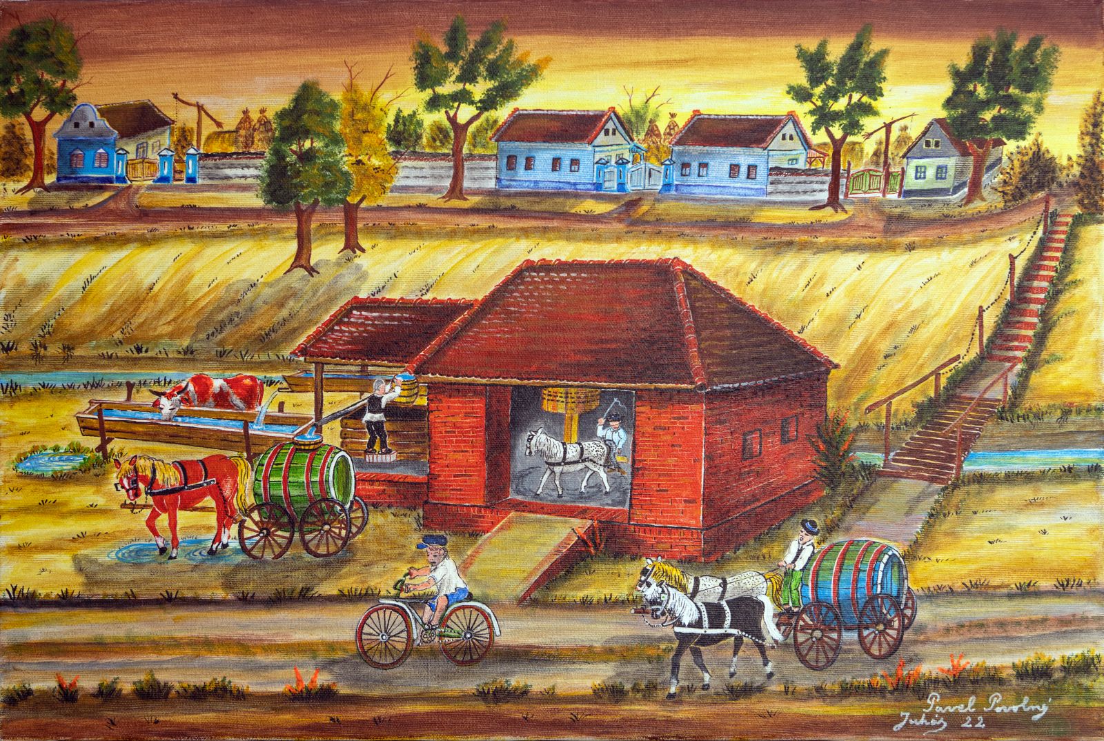 Pavel Povolni Juhas is an artist whose work primarily explores themes of grapes, wine, vineyards, and wine cellars. His pieces bring light that illuminates these spaces, creating an atmosphere of intimacy and richness. Juhas masterfully depicts all aspects of the wine tradition – from golden grapes to the tranquil space of the cellar – where light and shadows play a key role. On his canvases, wine is not just a beverage but a symbol of culture, tradition, and the enjoyment of life.