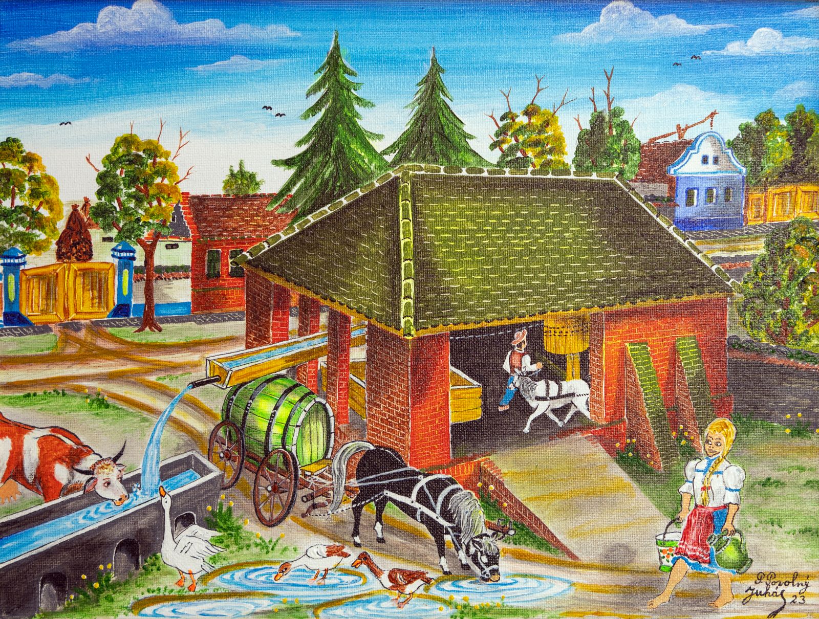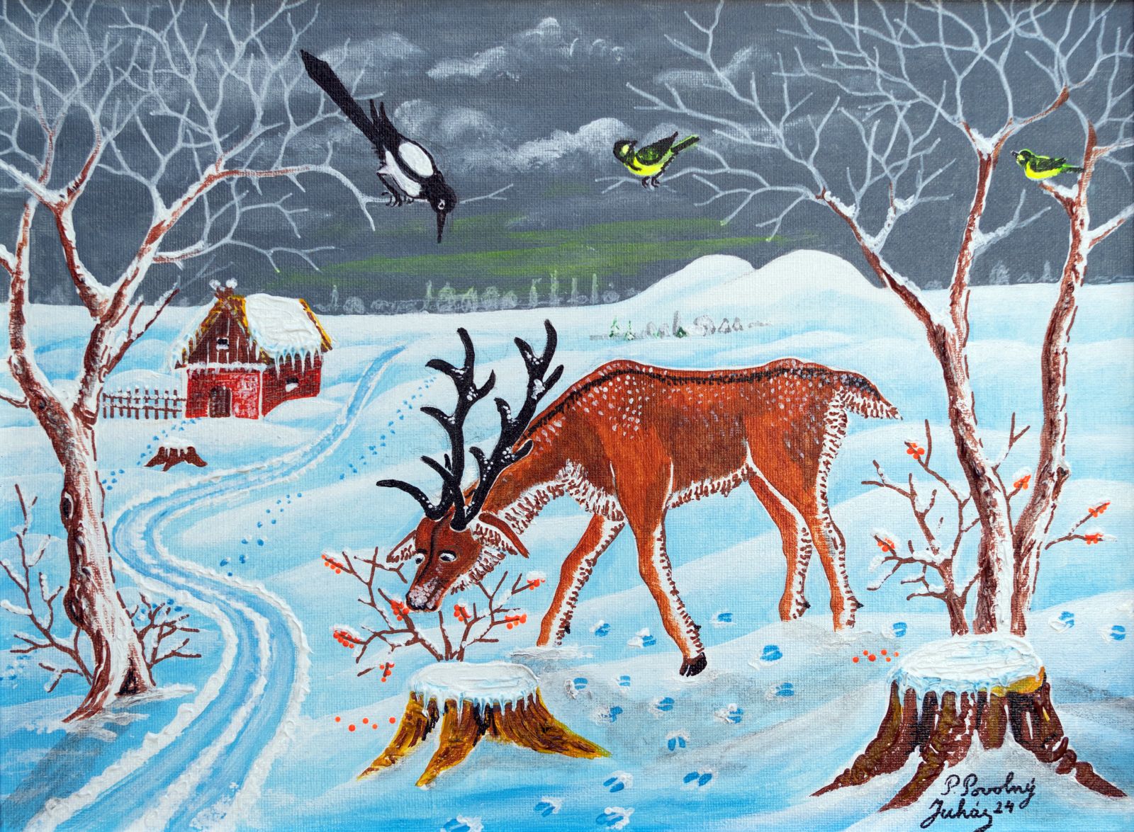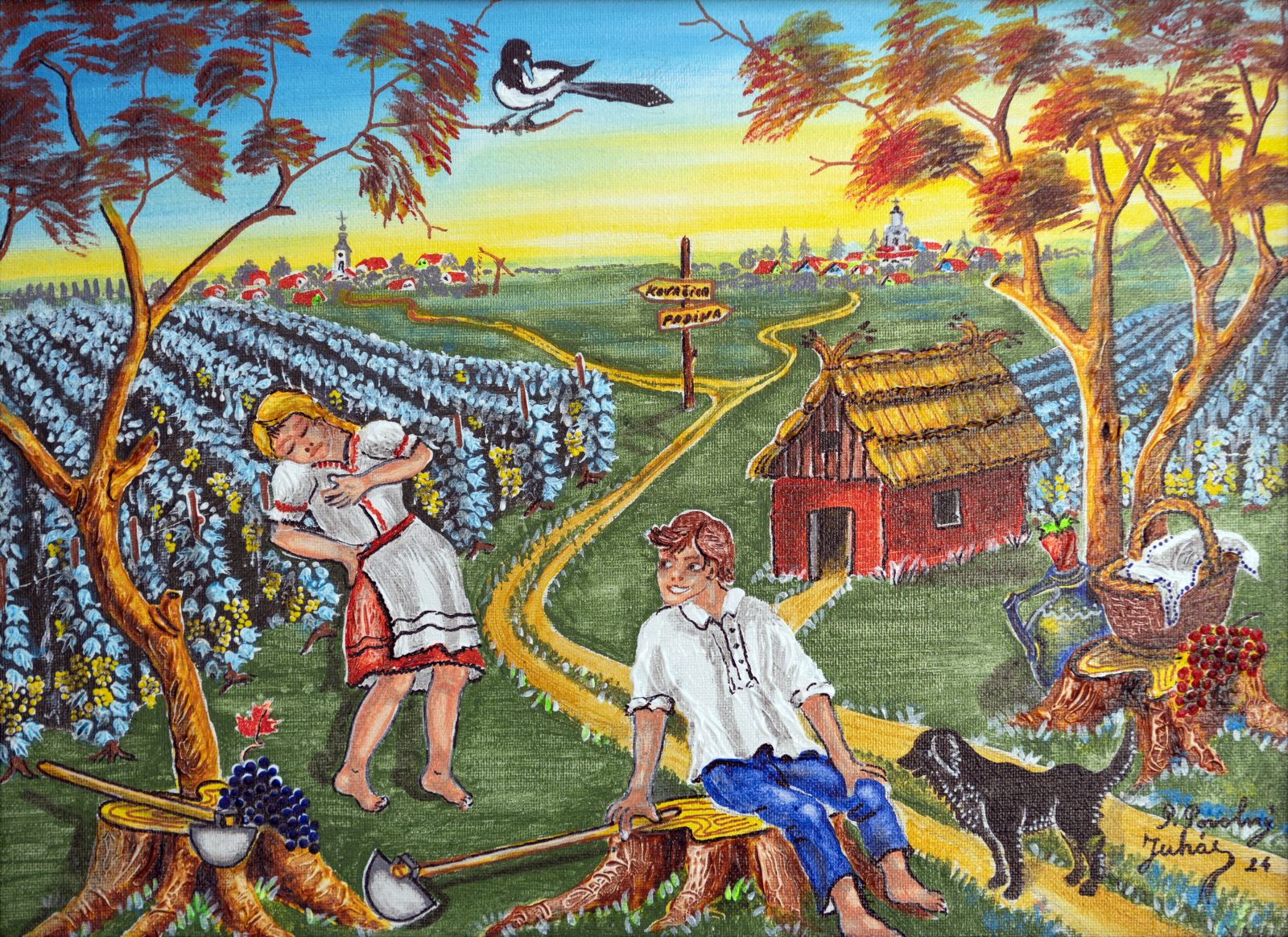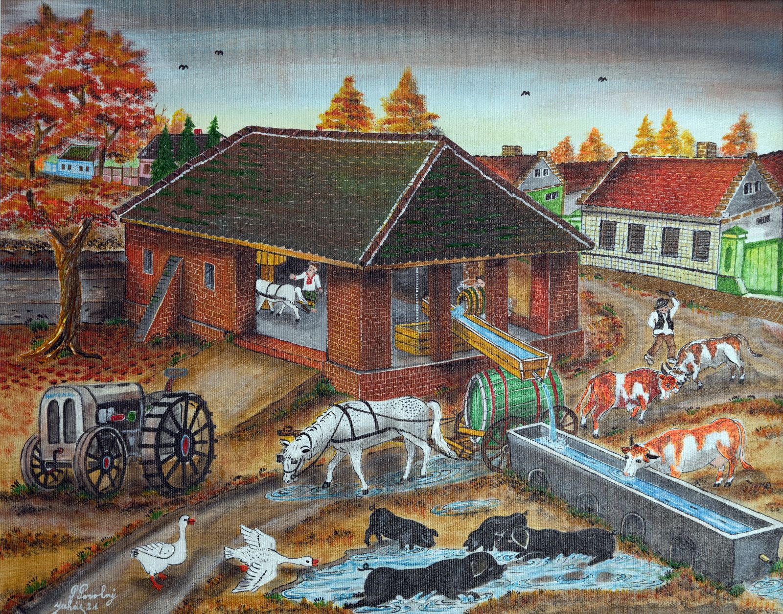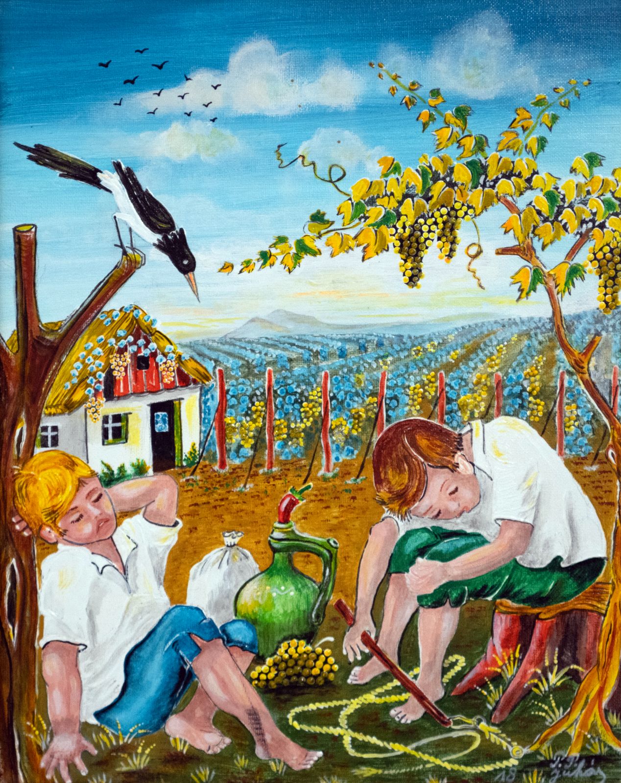 Pavel Povolni Juhas is an artist whose work primarily explores themes of grapes, wine, vineyards, and wine cellars. His pieces bring light that illuminates these spaces, creating an atmosphere of intimacy and richness. Juhas masterfully depicts all aspects of the wine tradition – from golden grapes to the tranquil space of the cellar – where light and shadows play a key role. On his canvases, wine is not just a beverage but a symbol of culture, tradition, and the enjoyment of life.