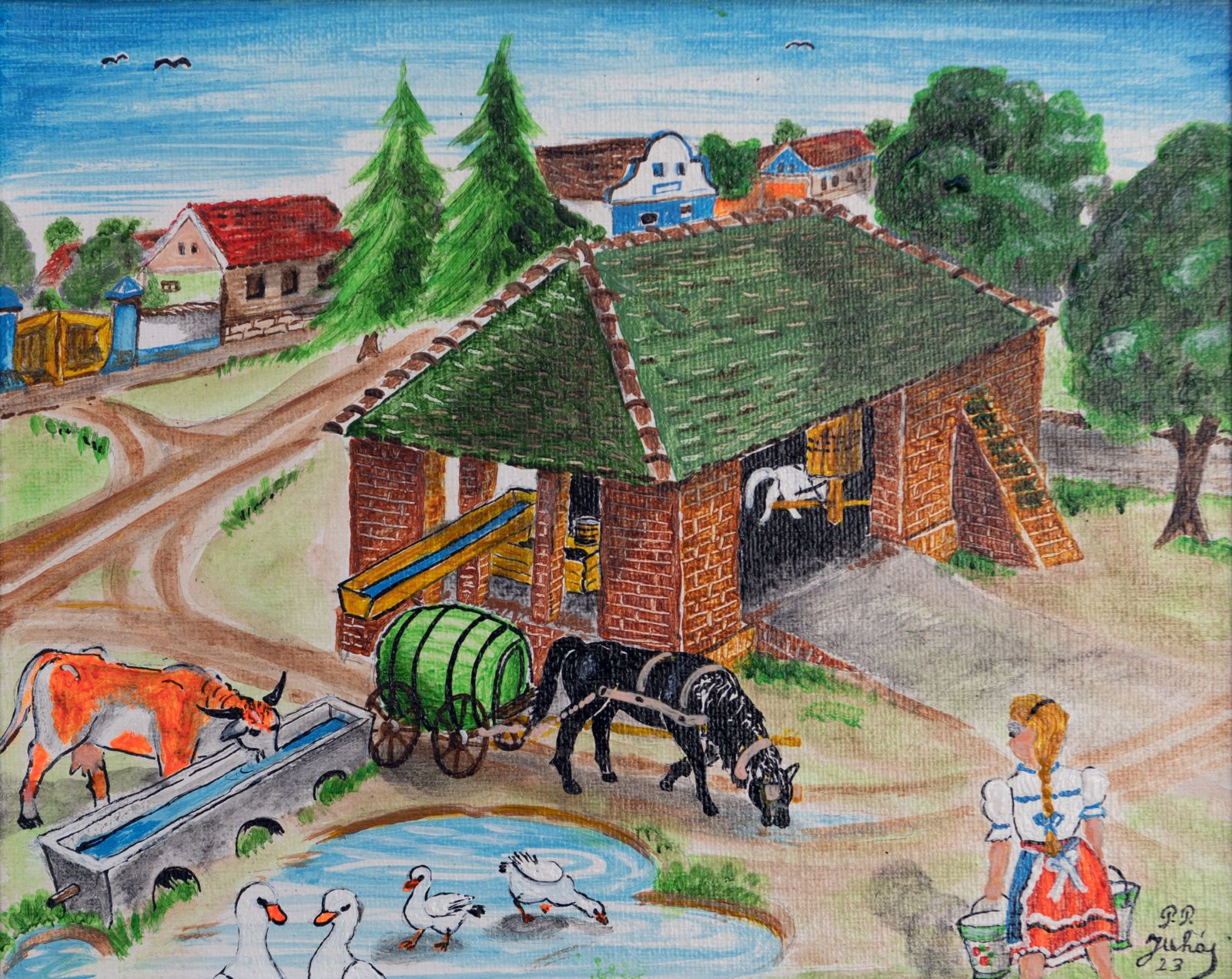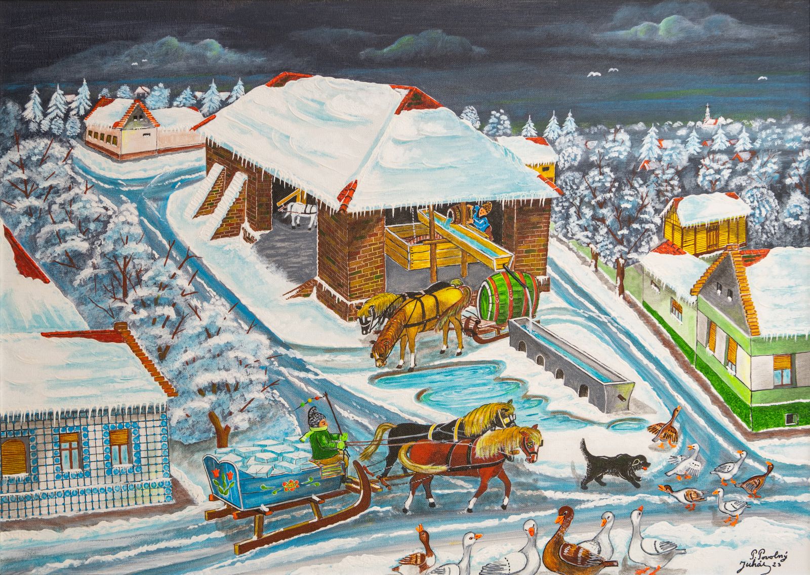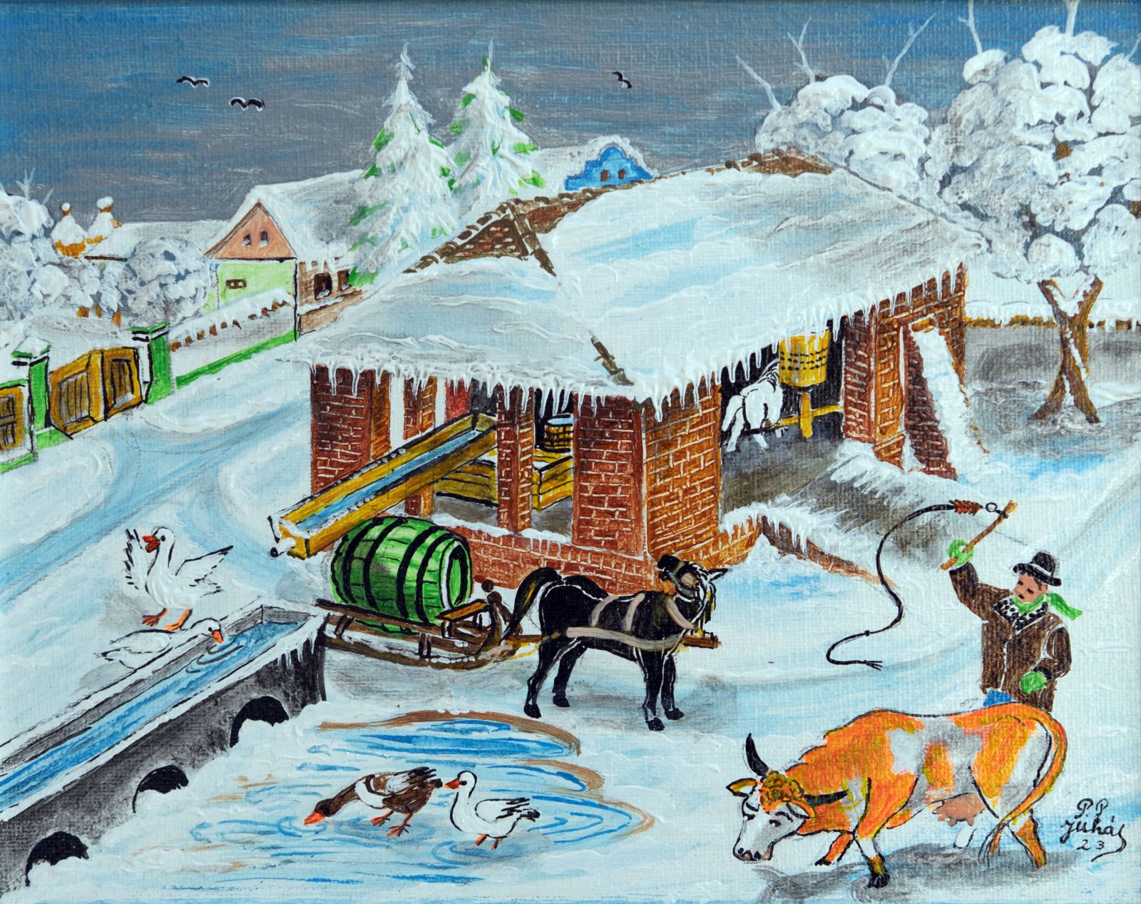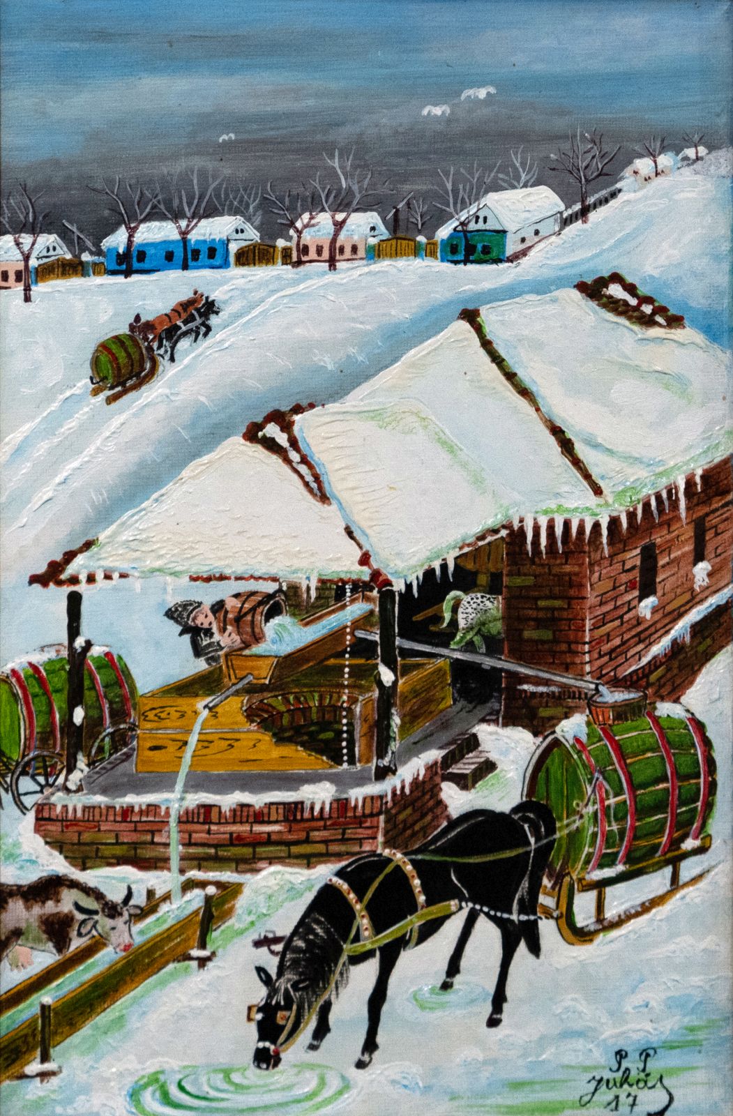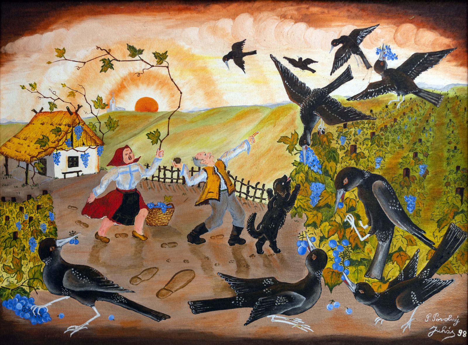 Pavel Povolni Juhas is an artist whose work primarily explores themes of grapes, wine, vineyards, and wine cellars. His pieces bring light that illuminates these spaces, creating an atmosphere of intimacy and richness. Juhas masterfully depicts all aspects of the wine tradition – from golden grapes to the tranquil space of the cellar – where light and shadows play a key role. On his canvases, wine is not just a beverage but a symbol of culture, tradition, and the enjoyment of life.