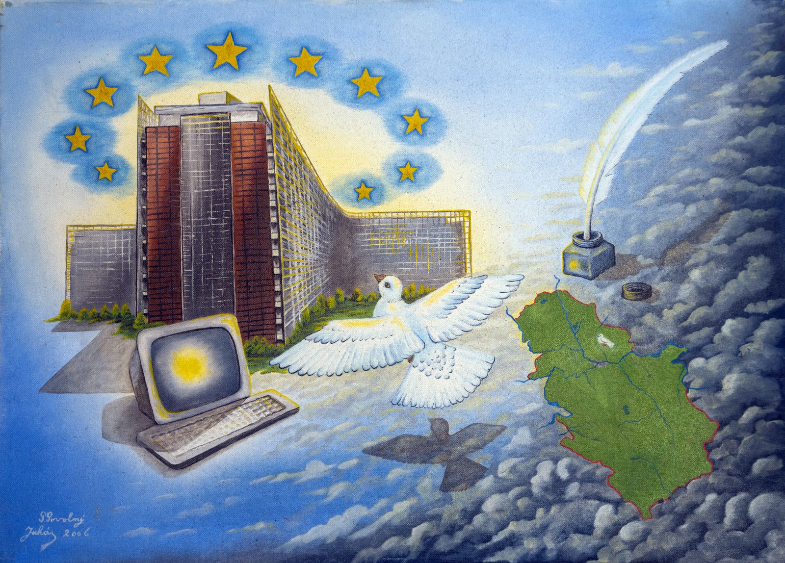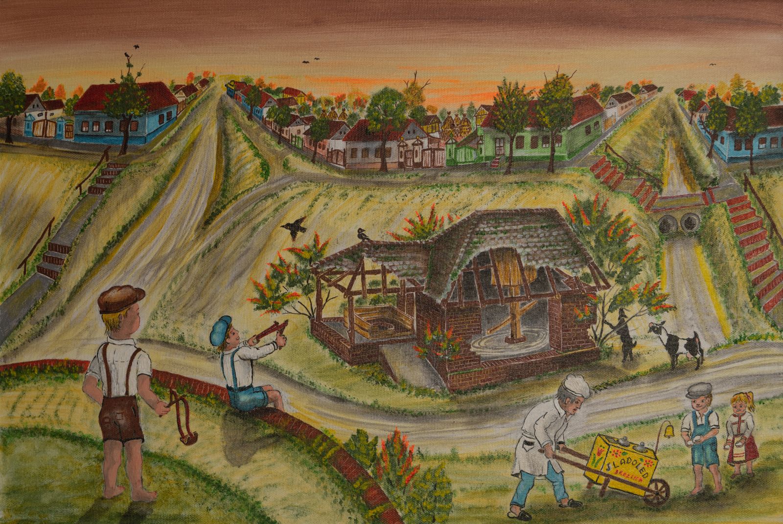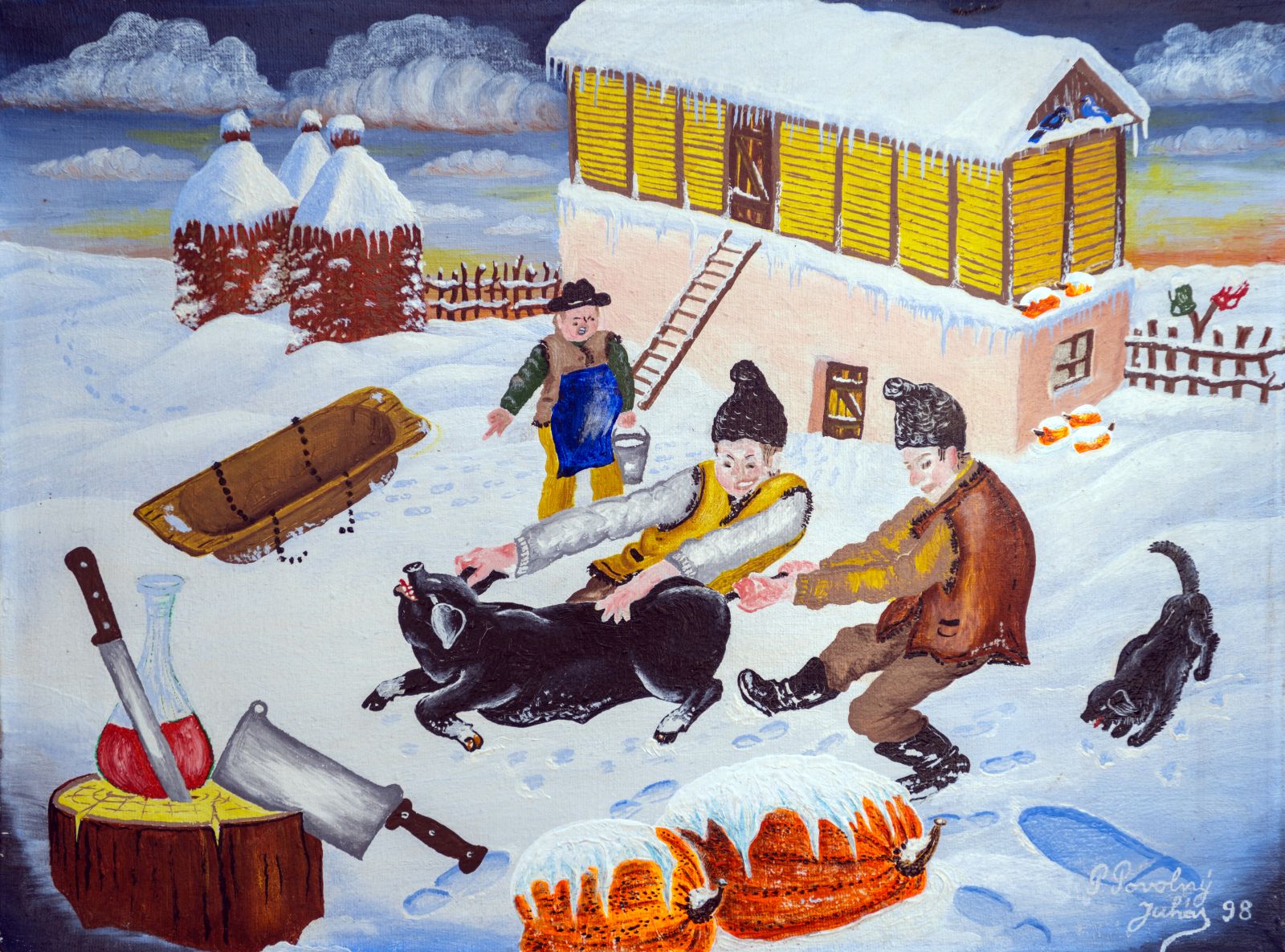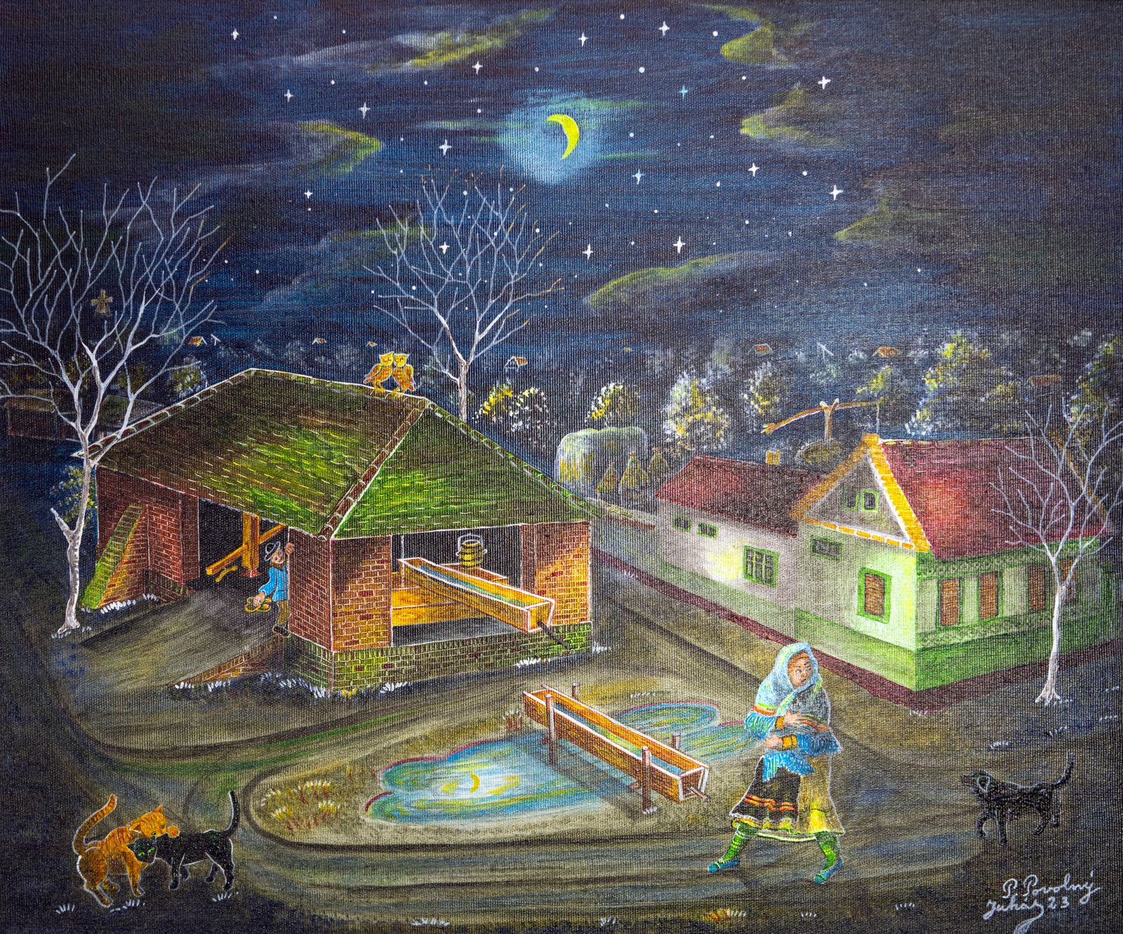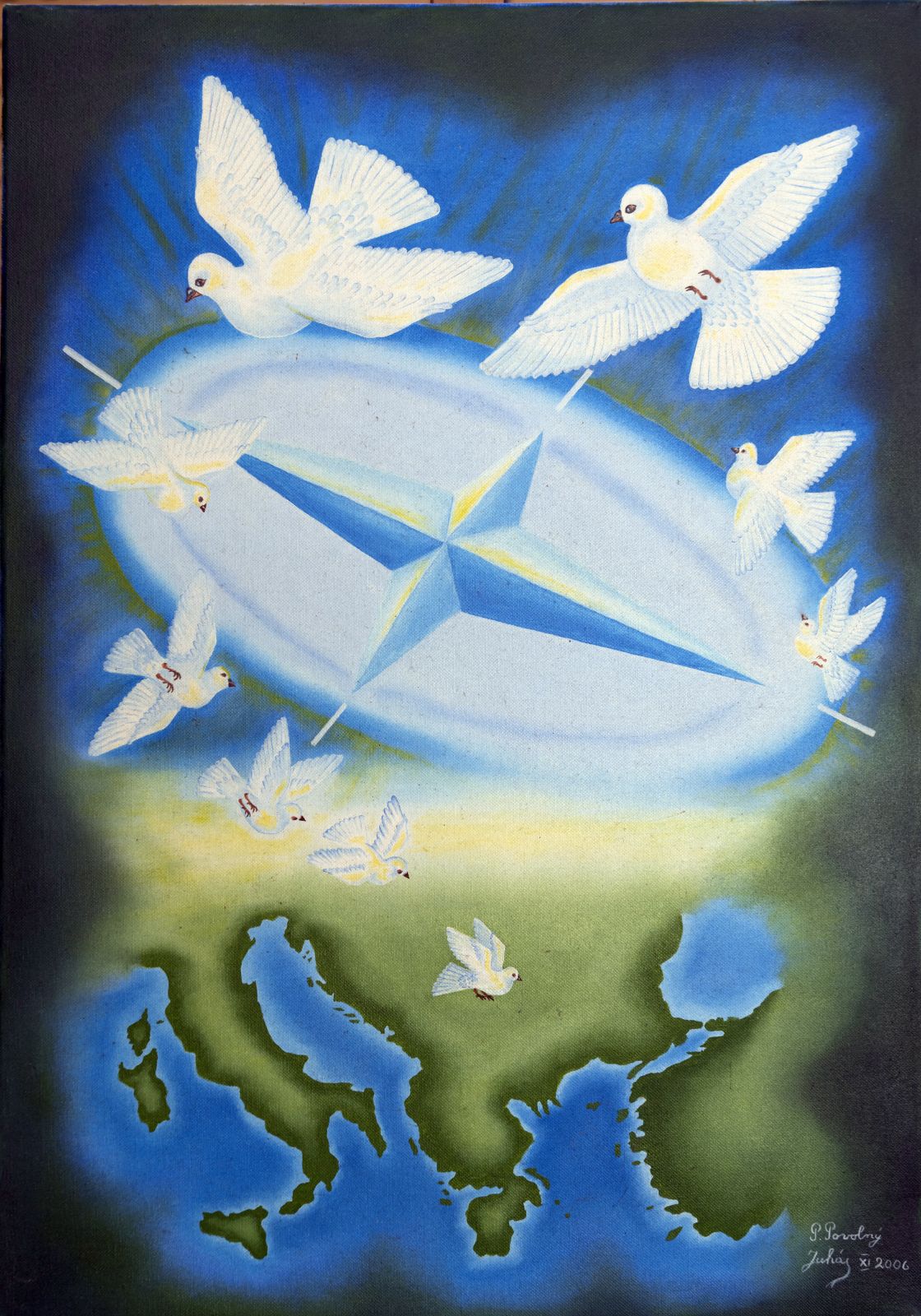 Pavel Povolni Juhas is an artist whose work primarily explores themes of grapes, wine, vineyards, and wine cellars. His pieces bring light that illuminates these spaces, creating an atmosphere of intimacy and richness. Juhas masterfully depicts all aspects of the wine tradition – from golden grapes to the tranquil space of the cellar – where light and shadows play a key role. On his canvases, wine is not just a beverage but a symbol of culture, tradition, and the enjoyment of life.
