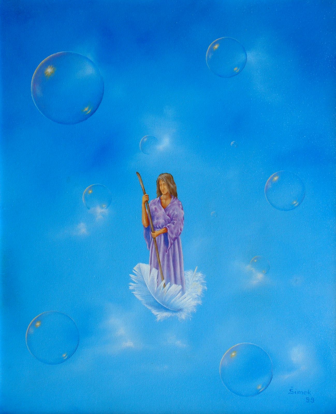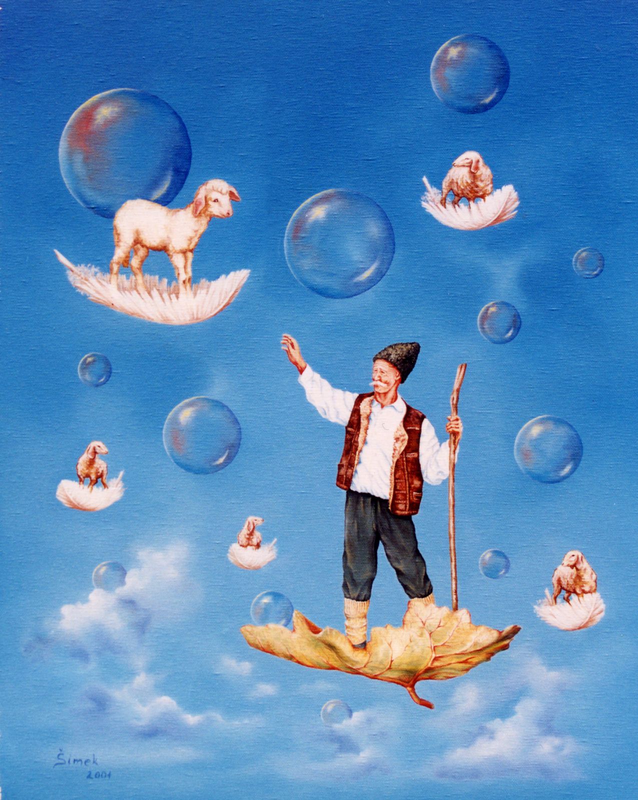 Jano Šimek objavil svoj talent na maľovanie už na základnej škole, no rýchlo upadol do zabudnutia a obmedzil sa na občasnú prácu s ceruzkou. V roku 1995 sa olejomaľba stala jeho vášňou a s pomocou skúsených maliarov získaval prvé zručnosti. Od začiatku odmieta naivitu a volí realizmus. Jeho obrazy kombinujú skutočné predmety a ľudí, zasadené do surreálnych scén. Neustále skúmajúci Jano sa pohybuje medzi realizmom a surrealizmom a jeho kolegovia ho označujú za hypersurrealistu.