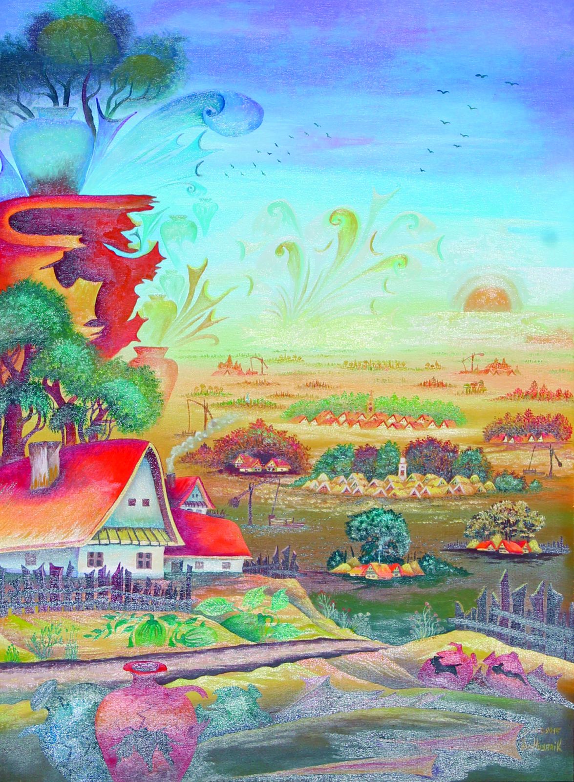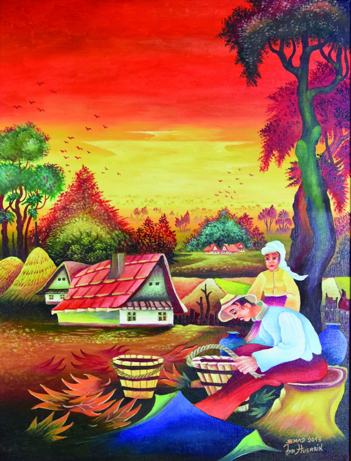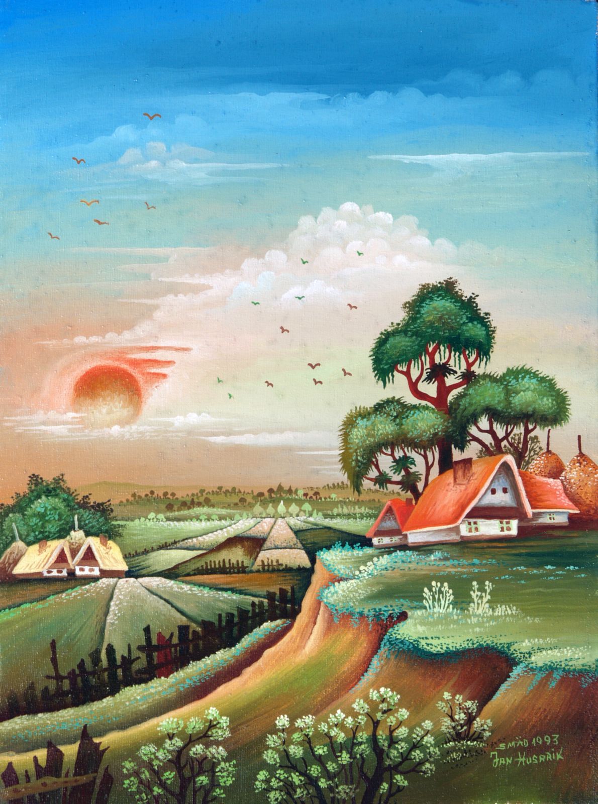 In the first works of Jan Husarik, the colour red was not just a colour; it was drought, thirst, and internal battle. Fields that burn, a scorching sun, and a heart that yearns – all of this was drawn on to the paintings. As the years passed, his work became much calmer, but with every stroke, he stayed deeply personal. Nevertheless, Husarik was not just a painter – he was an explorer. He imagined the battle of Troy in Banat; he had placed the myths into reality, and his paintings were used as a bridge between the past and the present. He joined together history and legend. Bringing to life pictures that spoke about reality that we cannot touch but we can only feel.