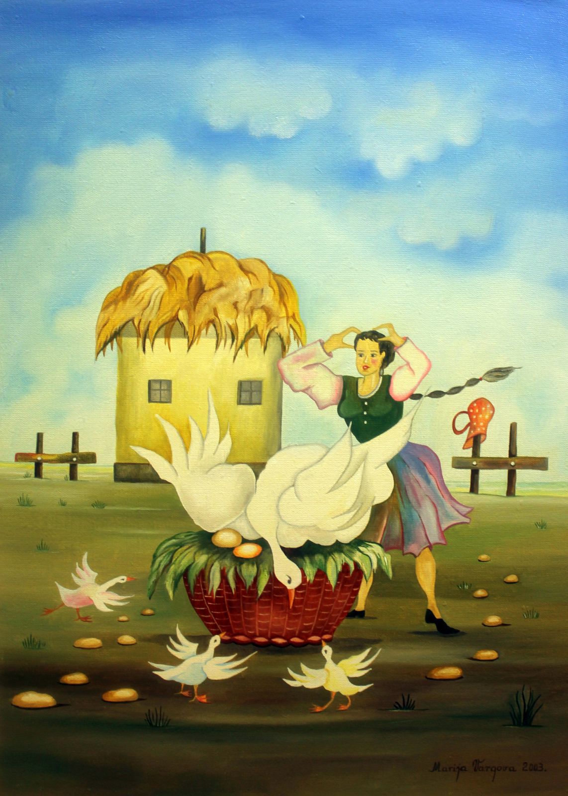 Mária Vargová je známa tým, že vytvára štíhle a harmonické postavy s krásnymi črtami tváre, z ktorých vyžaruje nežnosť a vyrovnanosť. Jej obrazy často zobrazujú chvíle oddychu, zaznamenané v jednoduchých, ale emotívnych scénach. Na rozdiel od mnohých iných umelcov insitného umenia sa Vargová dištancuje od zdôrazňovaných folklórnych prvkov, zameriavajúc sa na vnútornú harmóniu a pokoj. Jej farebnosť je mierna a jemná, vytvára atmosféru ticha a nehy. Jej tvorba je svetom, kde sa krása každodenných okamihov spája s pozorným, intímnym zobrazením života.