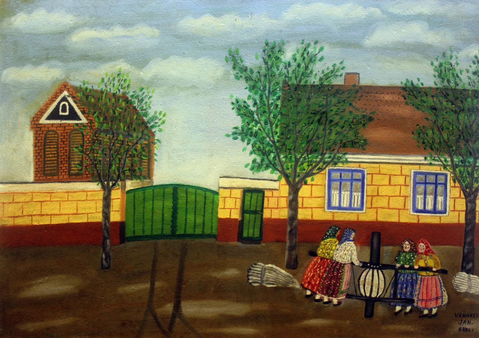 Jan Venjarski, Obrada kudeljem, 45x61, 1960.jpg